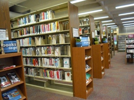 For many years, the nonfiction collection, arranged in Dewey Decimal order, resided along one side of the library in traditional high shelving in rows that blocked one side of the entrance to the room. One had to enter the long narrow rows to access the collection.