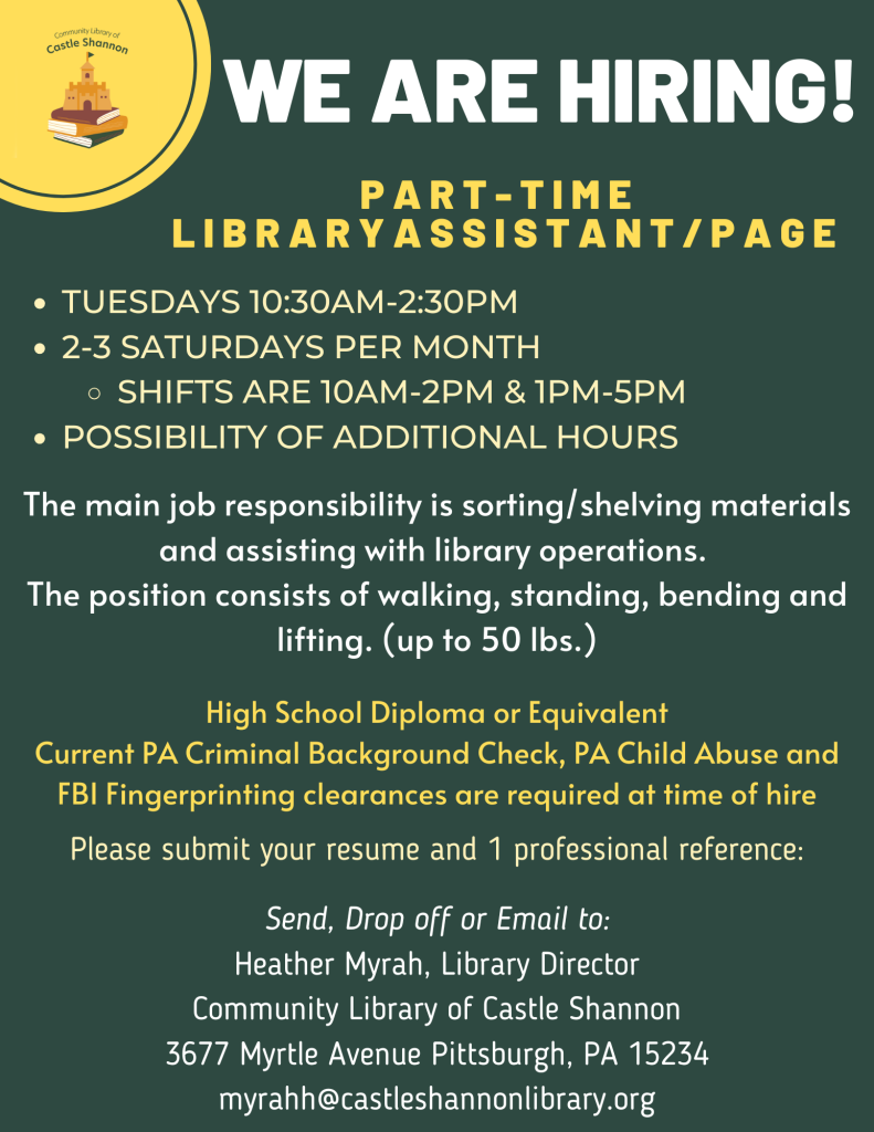 Library Assistant/Page PT (Community Library of Castle Shannon)
